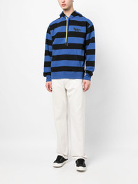 stripe-pattern jersey hoodie Highlights - Black/royal blue - Cotton - Horizontal stripe pattern - Signature fox motif - Drawstring hood - Long sleeves - Front pouch pocket - Ribbed cuffs and hem Imported Composition Body: Cotton 100% SIZE & FIT Model measurements Height 6 ft 2 in(1.89 m) Bust/Chest 37.4 in(95 cm) Hips 36.61 in(93 cm) Waist 28.34 in(72 cm) FittingInformation Designed to be unstructured, offering a loose fit throughout Made with a midweight knit, this piece offers some stretch This piece fits true to size – take your usual size Washing instructions Machine Wash