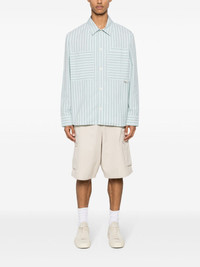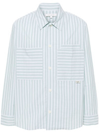 striped cotton shirt Highlights - Ice blue/mint green - Cotton - Multi-way stripe pattern - Spread collar - Long sleeves - Buttoned cuffs - Three chest patch pockets - Curved hem - Front button placket Imported Composition Cotton 100% SIZE & FIT Model measurements Height 6 ft 2 in(1.87 m) Bust/Chest 38.18 in(97 cm) Hips 36.61 in(93 cm) Waist 29.13 in(74 cm) Measurement CHEST 44.09 in(112 cm) SLEEVE LENGTH 25.19 in(64 cm) LENGTH 28.34 in(72 cm) WAIST 45.66 in(116 cm) Shoulder Width 19.68 in(50 cm) FittingInformation Designed to be unstructured, offering a loose fit throughout Made from a midweight non-stretch fabric This piece fits true to size – take your usual size