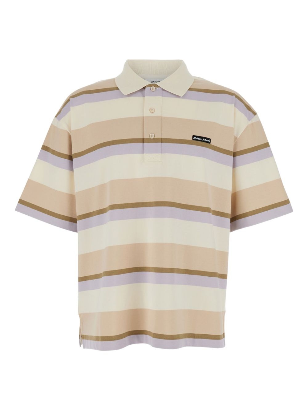 striped polo shirt Highlights - Light beige - Front button placket - Applique logo - Drop shoulder - Short sleeves Imported Composition Cotton 100%