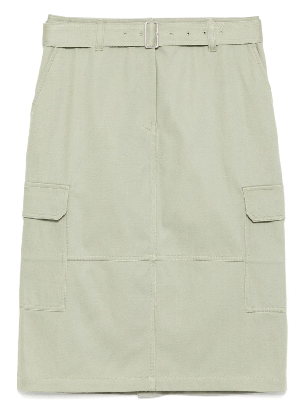 utility skirt Highlights - Mint green - Concealed front button, hook and zip fastening - Detachable belt - Two side slash pockets - Two side flap pockets - Two rear patch pockets Imported Composition Cotton 100%