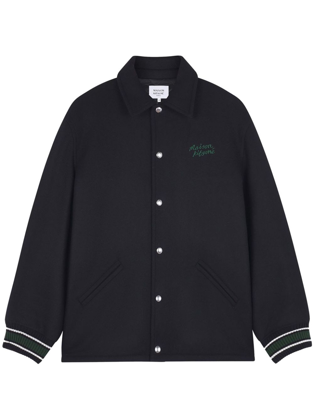 Varsity jacket Highlights - Black - Wool - Front press-stud fastening - Classic collar - Two side welt pockets - Long sleeves - Striped ribbed cuffs - Embroidered logo at the chest - Logo patch to the rear - Quilted lining - Straight hem Imported Composition Outer: Wool 100%, Polyester 100% Lining: Viscose 100%