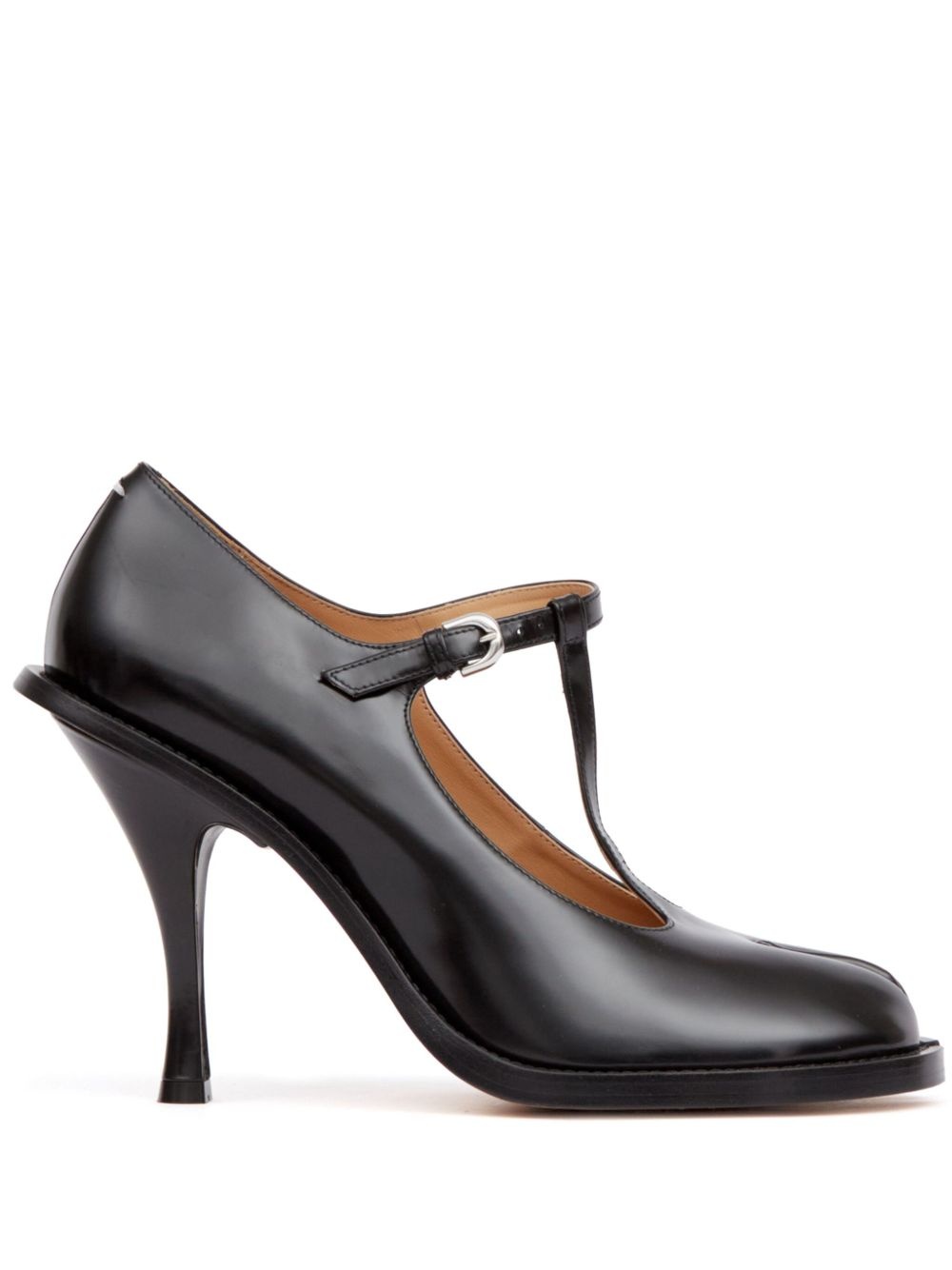 100mm Ourgeoise chunky pumps Highlights - Black - Calf leather - Smooth grain - Signature single-stitch logo - 100mm high sculpted heel - Buckle-strap fastening - Signature tabi toe - Branded leather insole - Leather outsole Made in Italy Composition Leather 100% SIZE & FIT Measurement HEEL 3.93 in(10 cm)