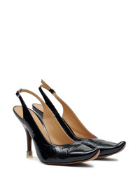 100mm slingback pumps Highlights - Black - Buckle-fastening slingback strap - Square toe - High stiletto heel Made in Italy Composition Sole: Calf Leather 100%, Rubber 100% Outer: Goat Skin 100%, Calf Leather 100% SIZE & FIT Measurement HEEL 3.93 in(10 cm)