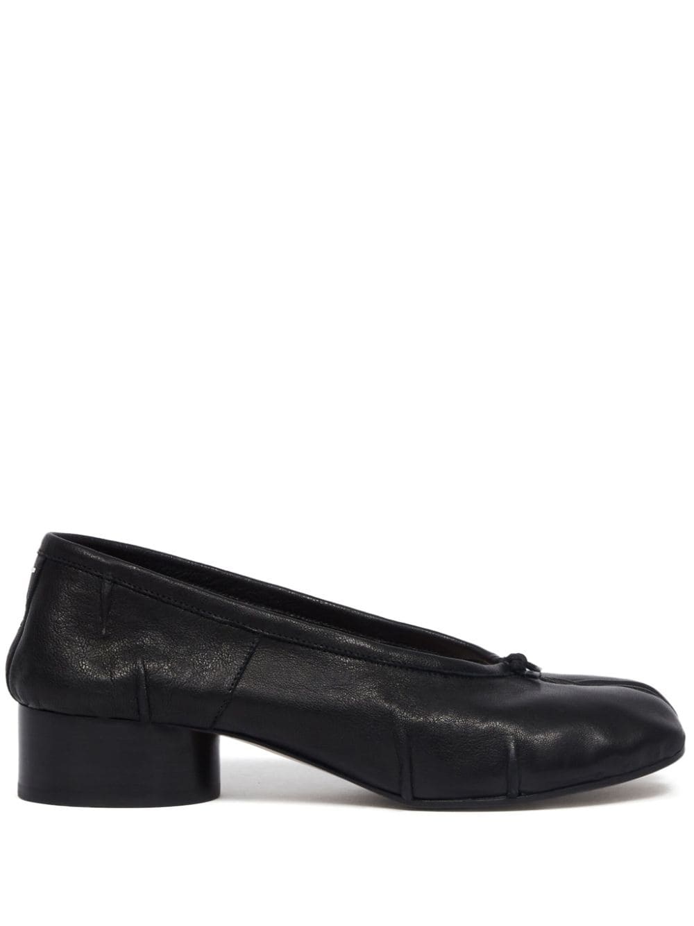 30mm Tabi New pumps Maison Margiela's Tabi ballerina shoes are refreshed for the SS24 collection with this black leather iteration. The sleek silhouette is enhanced with the iconic Tabi toe — which is inspired by Japanese 15th-century silhouettes — while a rounded block heel provides a subtle elevation. Highlights - Black - Calf leather - Bow detailing - Signature single-stitch logo - Signature tabi toe - Branded leather insole - Low block heel Made in Italy Composition Outer: Lamb Skin 100% Lining: Calf Leather 100% Sole: Calf Leather 100% SIZE & FIT Measurement HEEL 1.18 in(3 cm)