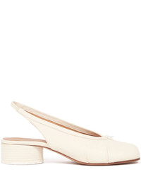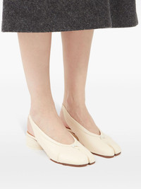 30mm Tabi ballerinas Highlights - Butter yellow - Calf leather - Signature tabi toe - Elasticated slingback strap - Block heel - Branded leather insole Made in Italy Composition Lining: Calf Leather 100% Outer: Sheepskin 100% Sole: Calf Leather 100%
