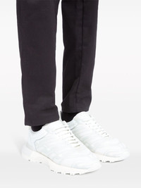 50-50 lace-up sneakers Remaining true to house codes, these Maison Margiela 50/50 sneakers are topped with a variety of the brand's iconic monikers. They're crafted in Italy and boast a panelled construction finished with the single-stitch logo and the signature raised numbers motif on the heel. Highlights - White - Calf leather - Panelled design - Signature numbers motif - Signature single-stitch logo - Almond toe - Front lace-up fastening - Branded insole - Rubber sole Made in Italy Composition Lining: Polyester 100%, Calf Leather 100% Outer: Polyester 70%, Nylon 20%, Elastodiene 10% Sole: Polyurethane 100%