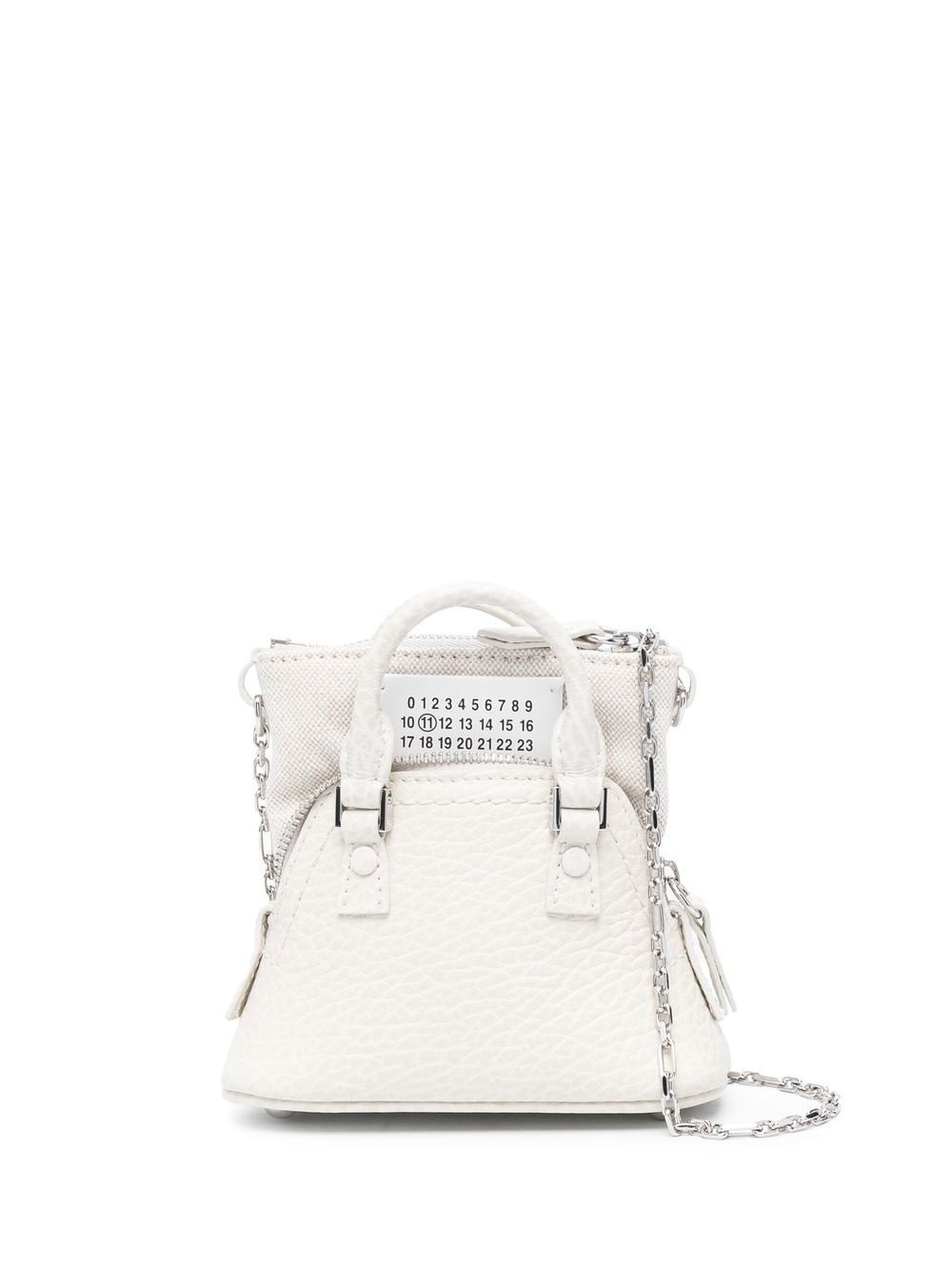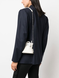 5AC Classique Baby crossbody bag Highlights - White - Calf leather - Grained texture - Signature numbers motif - Two top handles - Chain-link shoulder strap - Zip-fastening compartment - Internal logo patch Made in Italy Composition Outer: Calf Leather 100%, Brass 100%, Zinc 94%, Cotton 79%, Polyester 15%, other fibers 6%, Aluminium 4%, Copper 2% Lining: Cotton 100%, Calf Leather 100% SIZE & FIT Model measurements Height 5 ft 11 in(1.8 m) Bust/Chest 33.07 in(84 cm) Hips 37.4 in(95 cm) Waist 25.19 in(64 cm) Measurement DEPTH 1.96 in(5 cm) HANDLE 1.57 in(4 cm) HEIGHT 4.33 in(11 cm) STRAP 17.32 in(44 cm) WIDTH 4.72 in(12 cm)