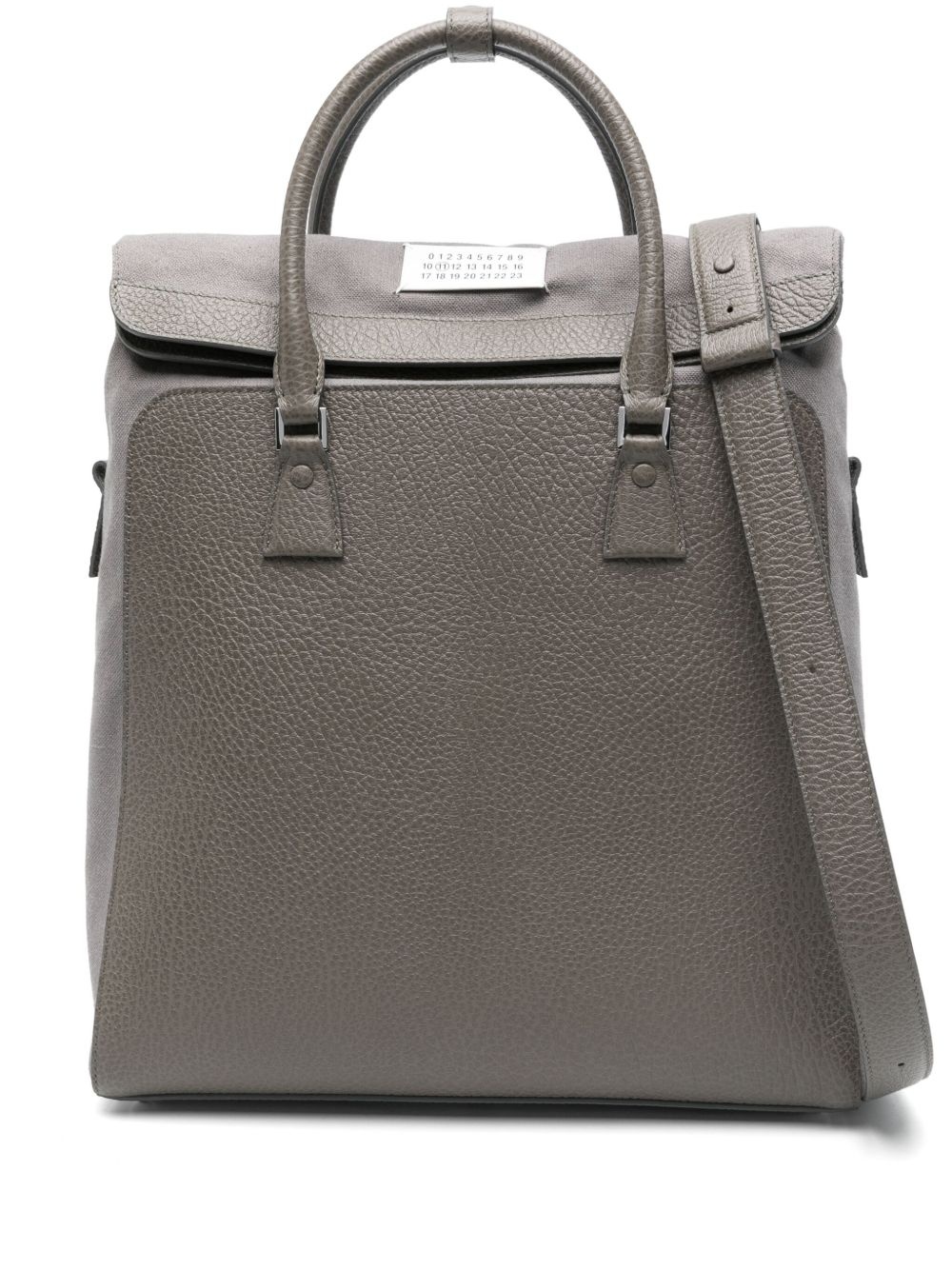 5AC Daily backpack Highlights - Taupe grey - Foldover top - Two rolled top handles - Detachable shoulder straps - Metal feet Made in Italy Composition Outer: Bovine Leather 100%, Brass 100%, Zinc 94%, Cotton 70%, Polyester 15%, other fibers 6%, Aluminium 6% Lining: Bovine Leather 100%, Cotton 100% SIZE & FIT Model measurements Height 6 ft 2 in(1.89 m) Bust/Chest 35.03 in(89 cm) Hips 38.18 in(97 cm) Waist 29.92 in(76 cm) Measurement DEPTH 3.93 in(10 cm) HEIGHT 17.71 in(45 cm) WIDTH 13.77 in(35 cm) HANDLE 8.66 in(22 cm)