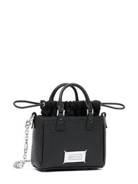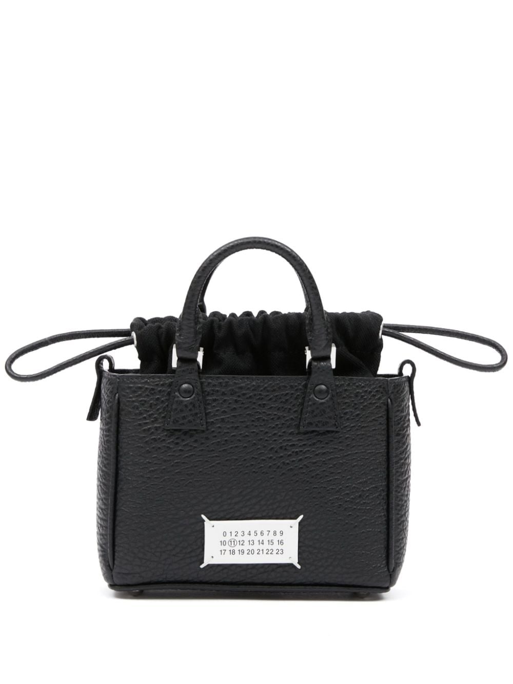 5AC Horizontal leather tote bag Highlights - Black - Calf leather - Pebbled texture - Logo patch to the front - Internal logo patch - Main compartment - Top drawstring fastening - Two rolled top handles - Detachable shoulder strap - Internal zip-fastening pocket Made in Italy Composition Outer: Calf Leather 100% Lining: Cotton 100% SIZE & FIT Measurement DEPTH 2.75 in(7 cm) HANDLE 1.57 in(4 cm) HEIGHT 4.72 in(12 cm) STRAP 24.01 in(61 cm) WIDTH 6.29 in(16 cm)