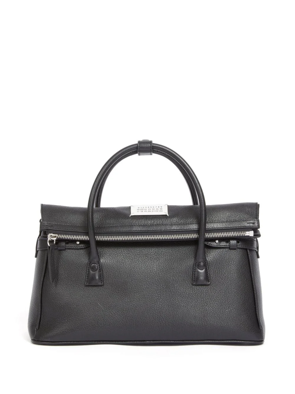 5AC medium leather tote bag Highlights - Black - Goatskin - Textured finish - Signature numbers motif - Logo patch to the front - Foldover top with zip fastening - Two top handles - Adjustable detachable shoulder strap - Main compartment - Internal zip-fastening pocket Made in Italy Composition Outer: Goat Skin 100%