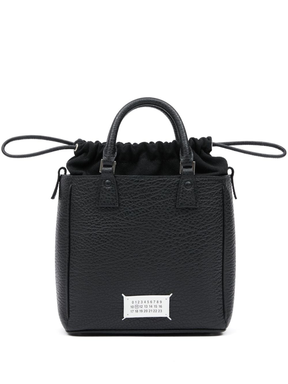 5AC Vertical tote bag Maison Margiela says its black 5AC bag takes its name from the French word ‘sac’ and explores the brand’s ‘anonymity of the lining concept.’ It’s crafted to a vertical silhouette from durable full-grain leather with a signature numbers patch and drawstring canvas panel at the top. Highlights - Black - Calf leather - Pebbled texture - Silver-tone logo plaque - Hard rectangle body - Internal logo tag - Top drawstring fastening - Adjustable detachable shoulder strap - Two rolled top handles - Main compartment - Internal zip-fastening pocket - Cotton lining Made in Italy Composition Lining: Cotton 100% Outer: Calf Leather 100% SIZE & FIT Measurement DEPTH 2.95 in(7.5 cm) HEIGHT 6.88 in(17.5 cm) STRAP 24.8 in(63 cm) WIDTH 7.08 in(18 cm)