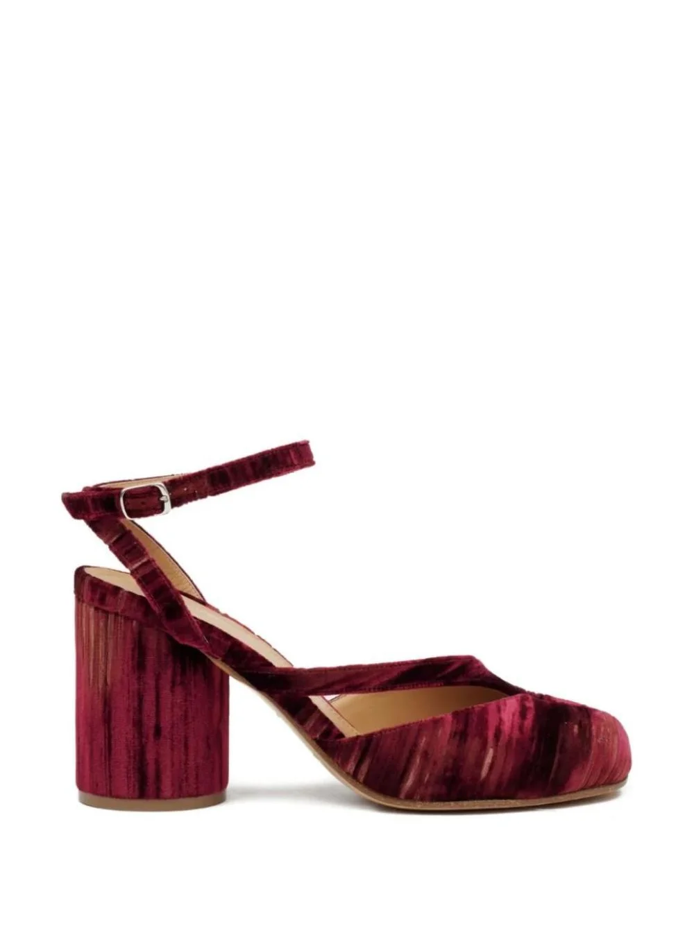 80mm Tabi ankle-strap sandals Highlights - Red - Velvet texture - Block heel - Ankle strap - Buckle fastening Made in Italy Composition Sole: Leather 100% Outer: Viscose 65%, Cupro 35% Lining: Leather 100% SIZE & FIT Measurement HEEL 3.14 in(8 cm)