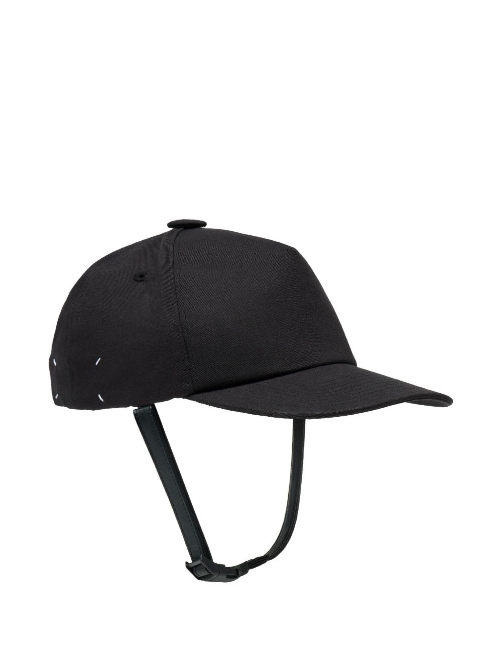adjustable strap baseball cap Highlights - Black - Curved brim - Adjustable strap - Signature four-stitch logo Made in Italy Composition Lining: Viscose 58%, Wool 23%, Horse Hair 19% Outer: Polyurethane 100%, Polyester 100%, Cotton 100%