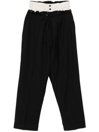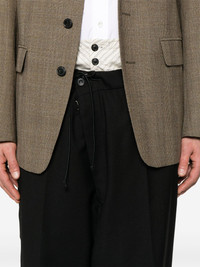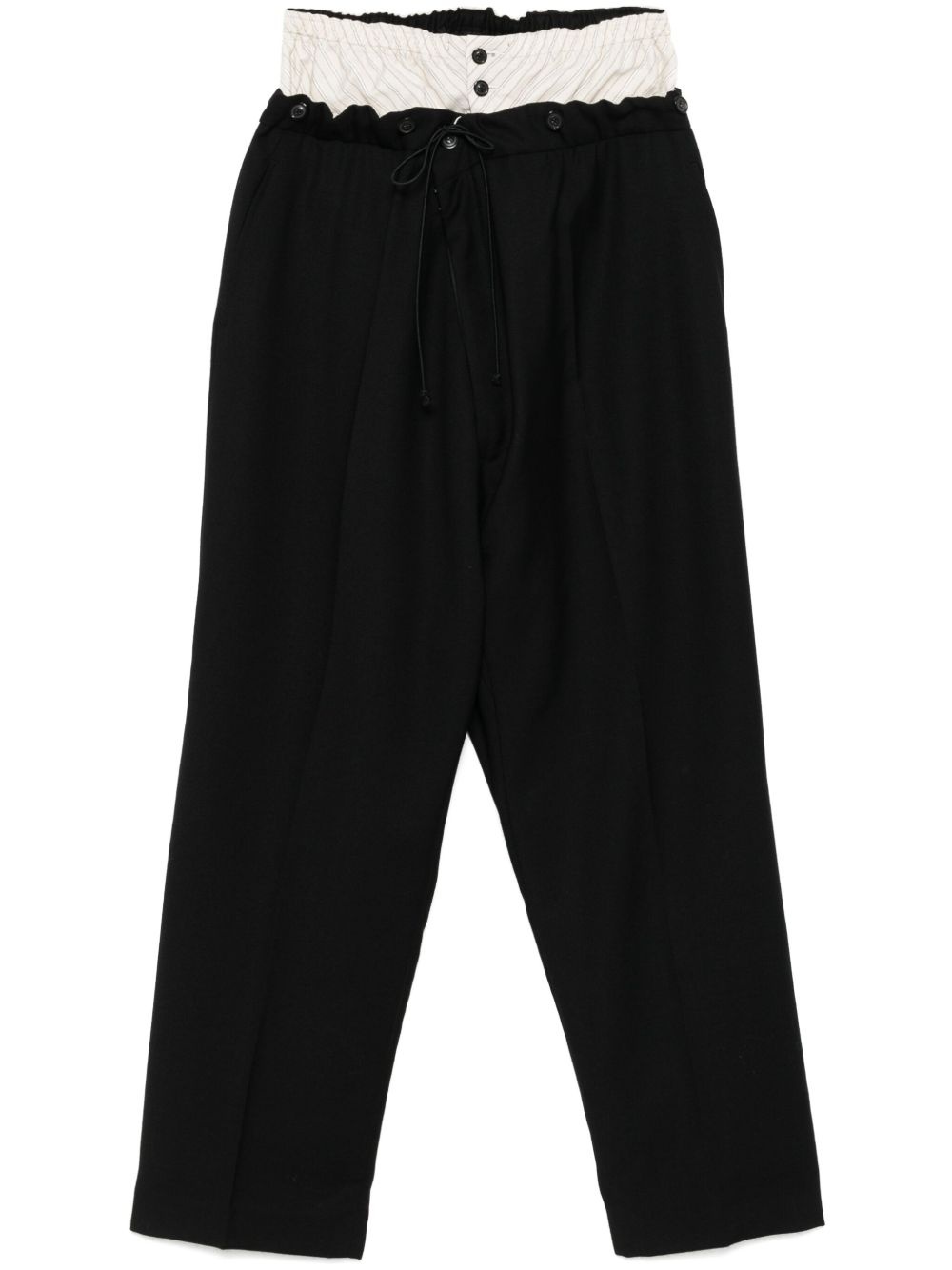 Anonimity of the Lining trousers Highlights - Black - Front button and zip fastening - Two side inset pockets - Adjustable strap to the rear - Rear button-fastening jetted pocket Made in Italy Composition Outer: Cotton 80%, Wool 80%, Mohair 20%, Polyester 20% Lining: Viscose 100%, Cotton 100% SIZE & FIT Model measurements Height 6 ft 2 in(1.87 m) Bust/Chest 37.79 in(96 cm) Hips 37.79 in(96 cm) Waist 30.31 in(77 cm) FittingInformation Designed with a wide leg, offering a loose and roomy fit The elasticated waist allows for a comfortable fit Made from a midweight non-stretch fabric