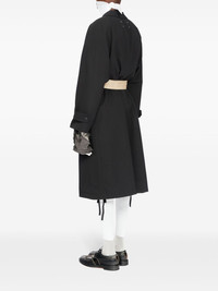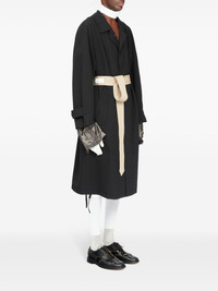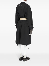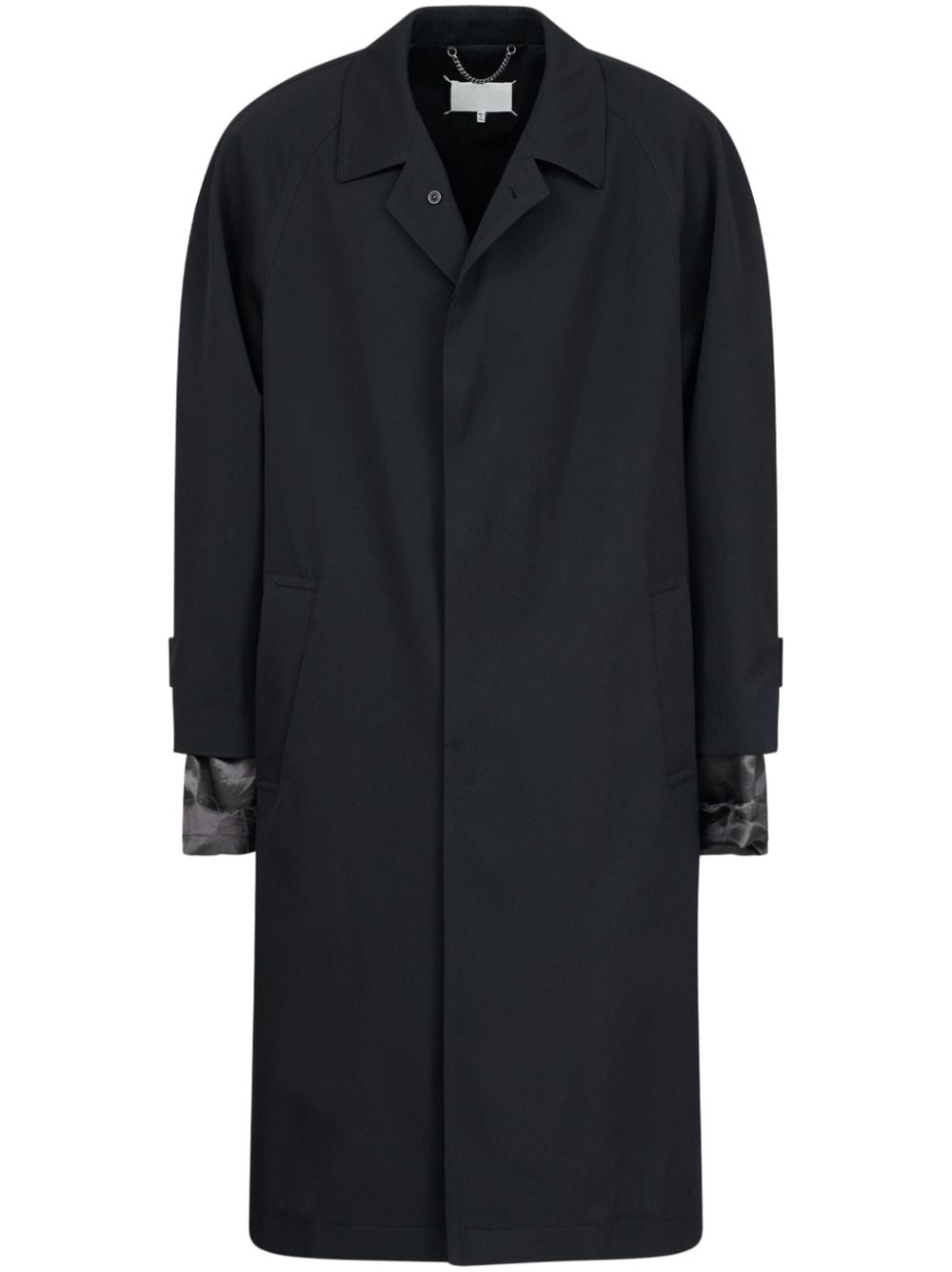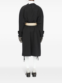 Anonymity of the lining coat Highlights - Black - Virgin wool - Layered details - Signature four-stitch logo - Notched collar - Concealed front fastening - Long sleeves - Belted cuffs - Two side welt pockets - American rear vent - Drawstring hem - Satin lining Made in Italy Composition Lining: Cotton 100%, Acetate 52%, Viscose 48% Outer: Virgin Wool 100%