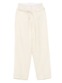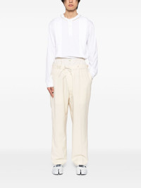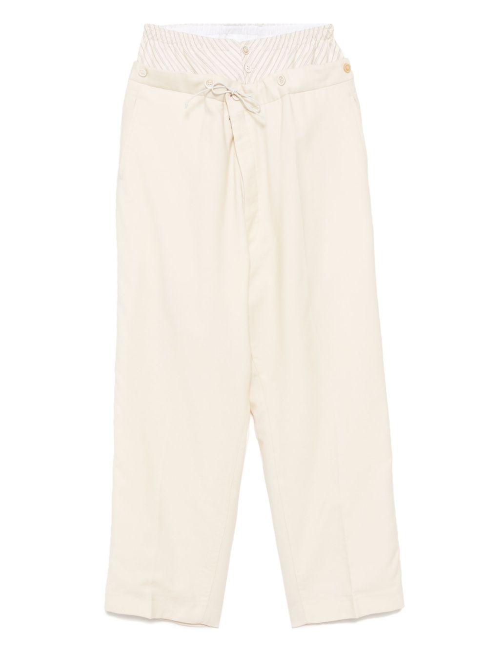 Anonymity of the lining trousers Highlights - Cream white - Front button fastening - Elasticated drawstring waistband - Two side welt pockets - Rear button-fastening jetted pocket Made in Italy Composition Wool 80%, Mohair 20% SIZE & FIT Model measurements Height 6 ft 2 in(1.88 m) Bust/Chest 34.25 in(87 cm) Hips 34.64 in(88 cm) Waist 26.77 in(68 cm) FittingInformation Designed for a relaxed straight leg, allowing a comfortable and loose fit over the leg Adjust this piece’s waistband to your preference using the drawstring Made from a midweight non-stretch fabric