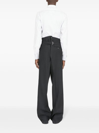 Barathea wool trousers Highlights - Black - Wool - Decorative button detailing - Pressed crease - High-waisted - Two side inset pockets - Rear jetted pocket - Adjustable strap to the rear - Wide leg - Front button and zip fastening - Extra-long length Made in Italy Composition Wool 100%