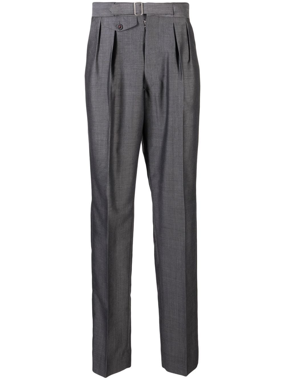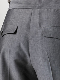 belted tapered trousers battleship grey mohair-wool blend belted waist pleat detailing pressed crease concealed front fastening button-fastening pocket two diagonal pockets to the sides two rear button-fastening pockets Made in Italy Composition Outer: Mohair 60%, Wool 40% Lining: Viscose 100% SIZE & FIT Model measurements Height 6 ft 2 in(1.88 m) Bust/Chest 36.61 in(93 cm) Hips 37.79 in(96 cm) Waist 28.74 in(73 cm) FittingInformation This piece fits true to size. We recommend you get your regular size Regular fit Made with a mid-weight non-stretch fabric Washing instructions Specialist Cleaning