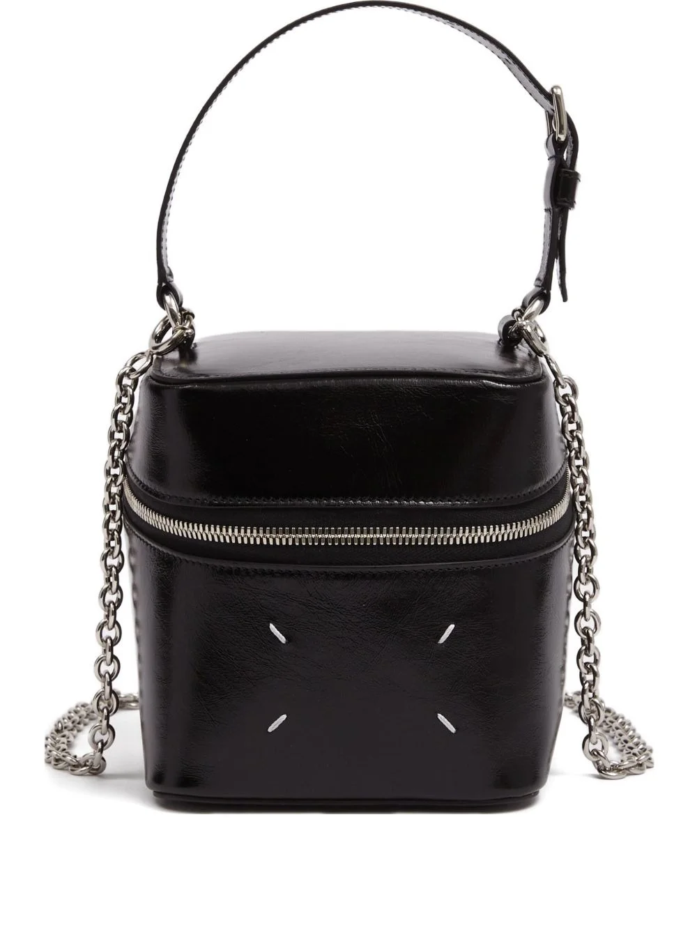 Big Cube clutch bag Highlights - Black - Calf leather - Chain shoulder strap - Top handle - Zip fastening - Signature four stitch detail Made in Italy Composition Outer: Calf Leather 100%