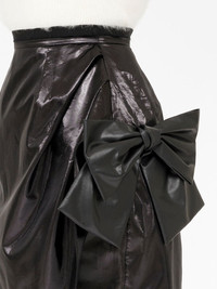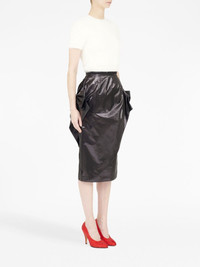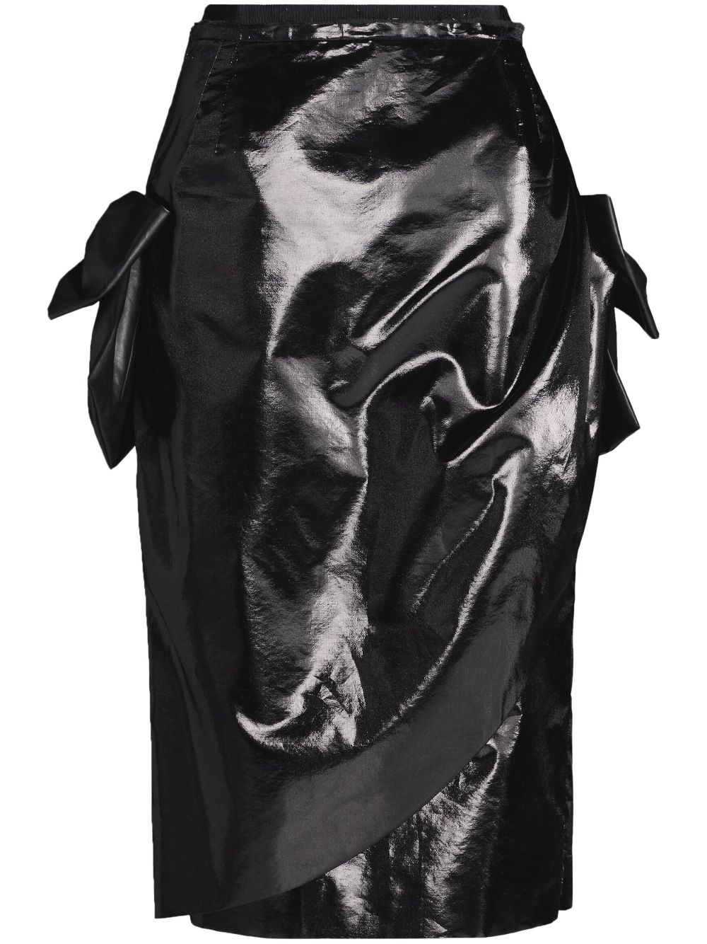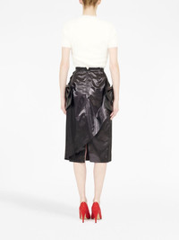 bow-detail asymmetric midi skirt Highlights - Black - Faux leather - Patent finish - Asymmetric design - Bow detailing - Concealed rear zip fastening - High-waisted - Pencil silhouette - Below-knee length Made in Italy Composition Polyester 100% SIZE & FIT Measurement HIPS 37 in(94 cm) LENGTH 30.31 in(77 cm) WAIST 25.19 in(64 cm) Washing instructions Read Manufacturer Guidelines