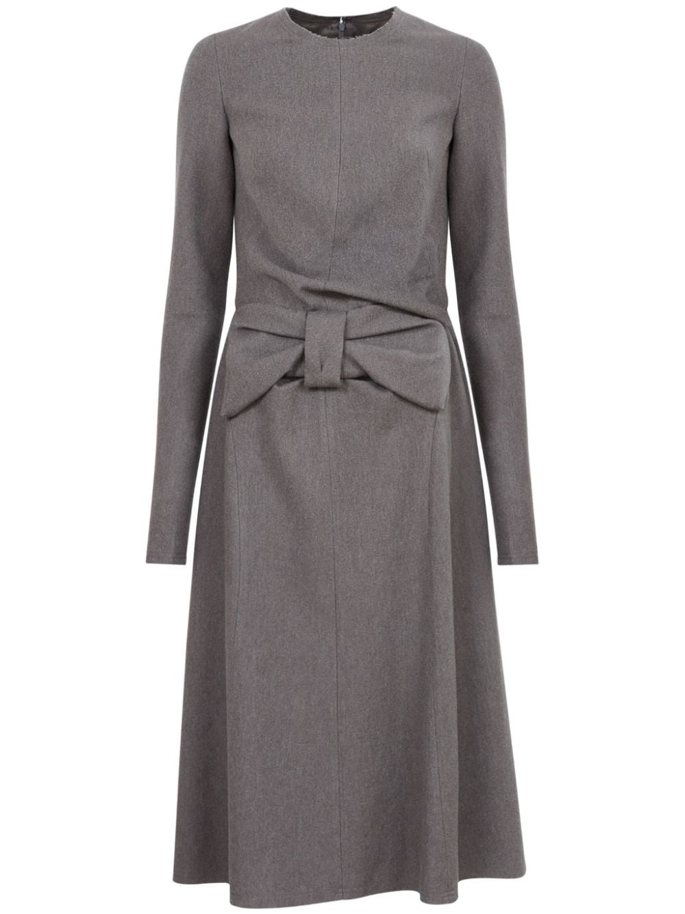 bow-detailing midi dress Highlights - Grey - Wool-cotton blend - Bow detailing - Crew neck - Concealed rear zip fastening - Long sleeves - Mid-length - Straight hem Made in Italy Composition Wool 50%, Cotton 50%