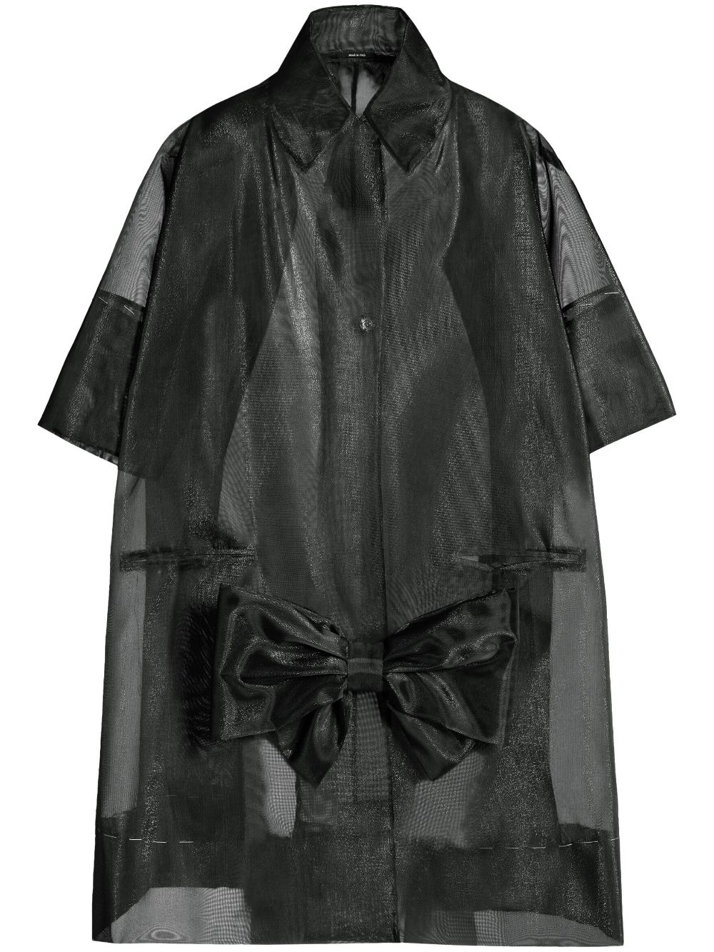 bow-detail tulle coat Highlights - Black - Semi-sheer construction - Oversize bow detail - Oversized pointed collar - Front button fastening - Three-quarter length sleeves - Mid-length Made In Italy Composition Polyamide 85%, Polyester 15% SIZE & FIT Measurement SLEEVE LENGTH 18.89 in(48 cm) LENGTH 48.03 in(122 cm) Washing instructions Read Manufacturer Guidelines