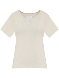 button-placket T-shirt Maison Margiela's innovative yet minimalist design style is reflected in this short-sleeve T-shirt which is made from stretch cotton and features a two-button placket at the neckline. Highlights - Light beige - Stretch-design - Round neck - Front button placket - Short sleeves - Straight hem Made in Italy Composition Polyamide 88%, Spandex/Elastane 12% Washing instructions Read Manufacturer Guidelines