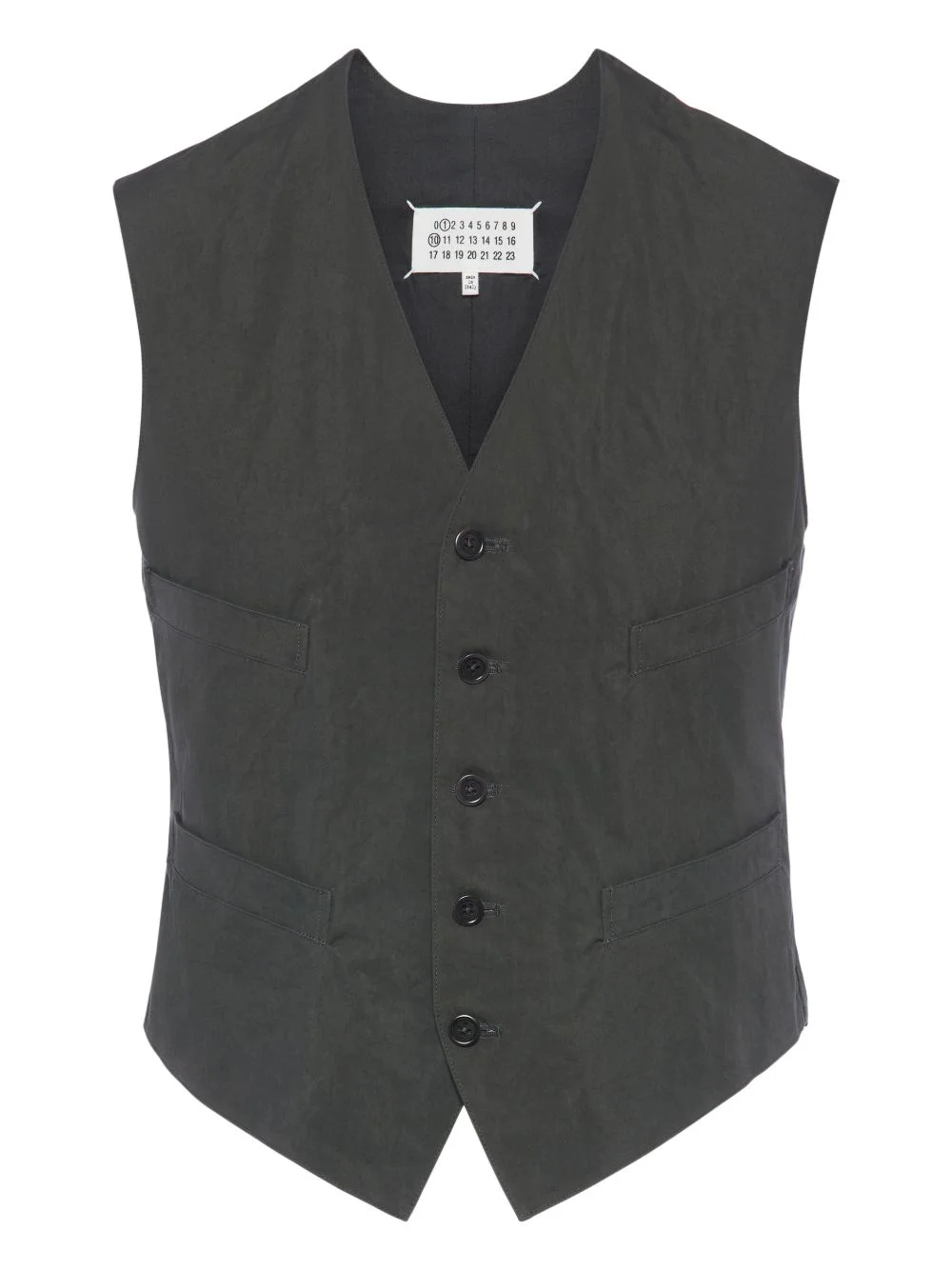 button pocket jacket Highlights - Anthracite grey - Button fastening - Sleeveless - V-neck - Two pockets - Rear buckle strap Made in Italy Composition Cotton 77%, Silk 23% Washing instructions Read Manufacturer Guidelines