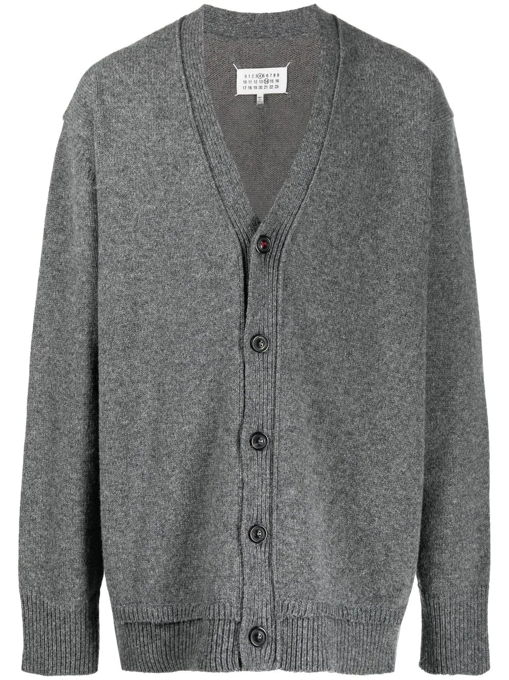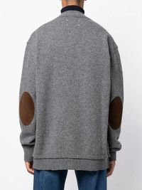 V-neck elbow-patch cardigan Highlights - Dark grey - Linen-wool blend - Signature four-stitch logo - Front button fastening - V-neck - Long sleeves - Elbow patches Made in Italy Composition Calf Leather 100%, Wool 46%, Linen/Flax 31%, Cotton 23% SIZE & FIT Model measurements Height 5 ft 10 in(1.77 m) Bust/Chest 35.03 in(89 cm) Hips 35.03 in(89 cm) Waist 23.62 in(60 cm) Measurement CHEST 48.03 in(122 cm) SLEEVE LENGTH 35.82 in(91 cm) LENGTH 29.52 in(75 cm) FittingInformation This piece fits true to size. We recommend you get your regular size Cut for a loose fit Made with a mid-weight fabric Washing instructions Hand Wash