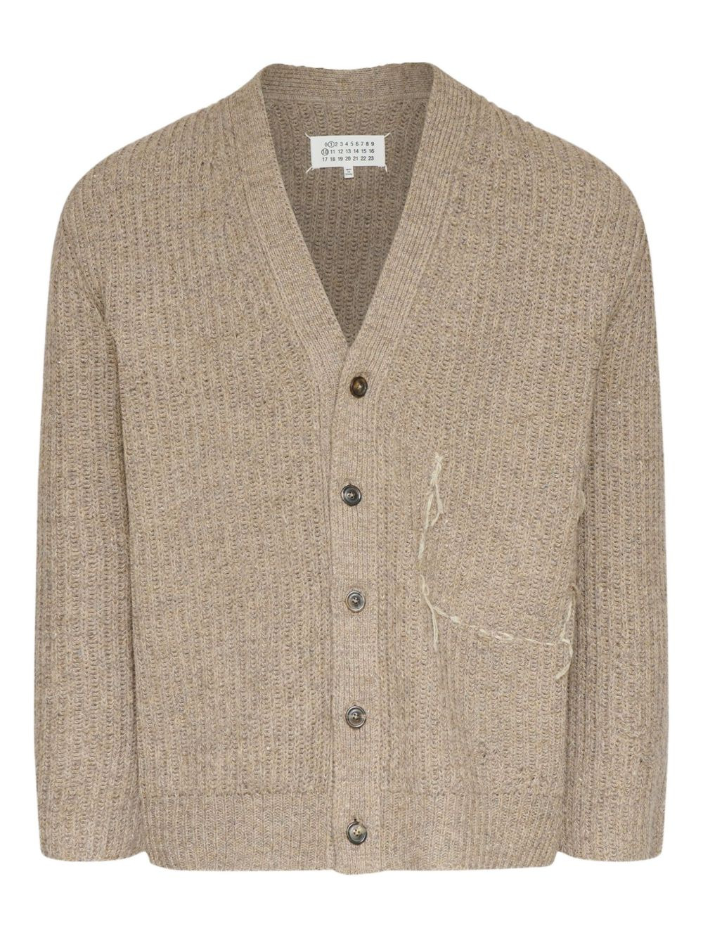 button-up textured cardigan Highlights - Beige - V-neck - Button fastening - Ribbed design Made in Italy Composition Virgin Wool 51%, Cotton 47%, other fibers 2%