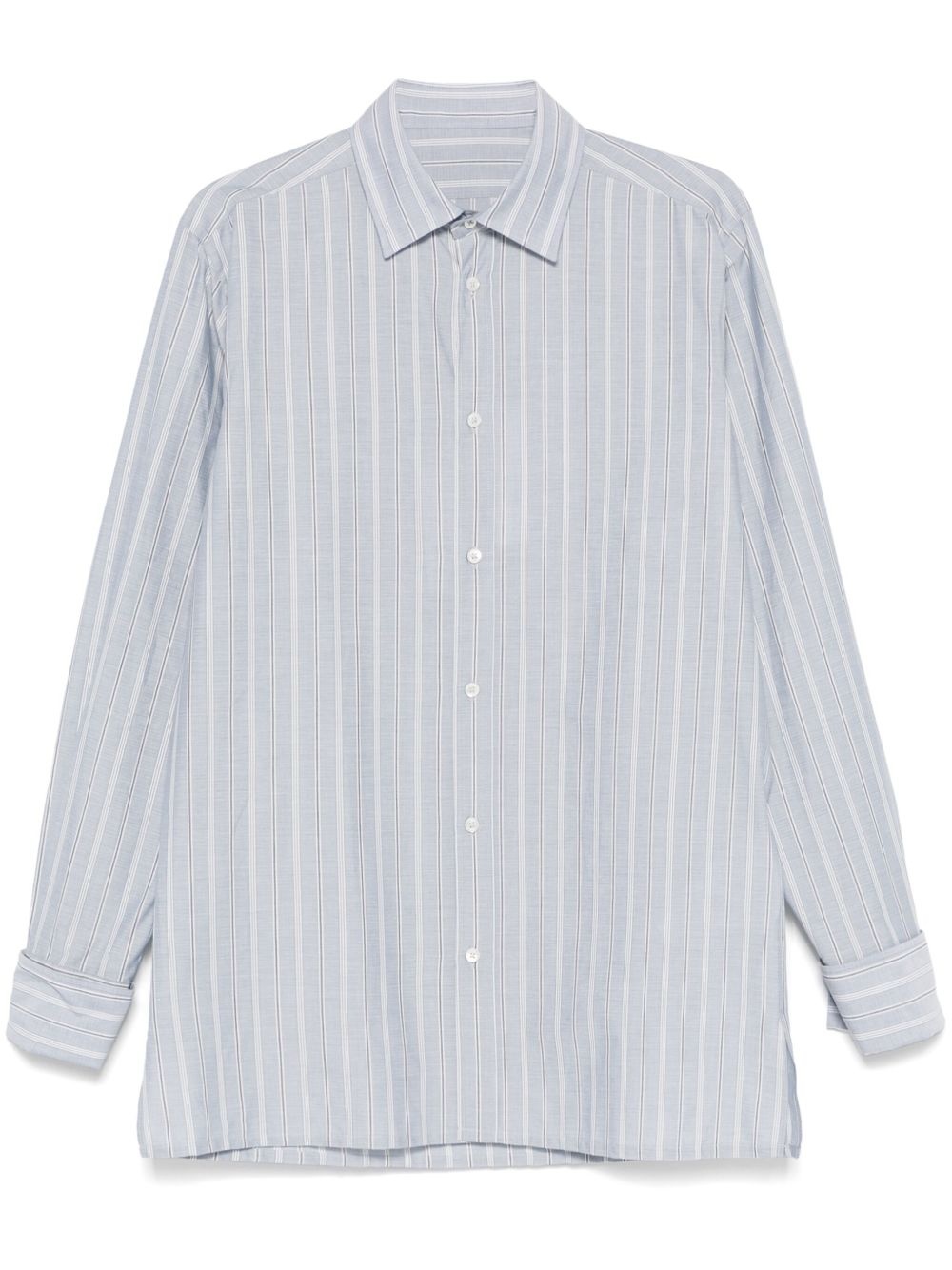 candy-striped shirt Highlights - Ice blue - Front button placket - Buttoned cuffs - Hem gusset - Signature four-stitch logo Made in Italy Composition Cotton 100% SIZE & FIT Model measurements Height 6 ft 2 in(1.89 m) Bust/Chest 35.03 in(89 cm) Hips 38.18 in(97 cm) Waist 29.92 in(76 cm) FittingInformation Designed for a regular fit, allowing for a comfortably loose fit throughout the body Made from a midweight non-stretch fabric