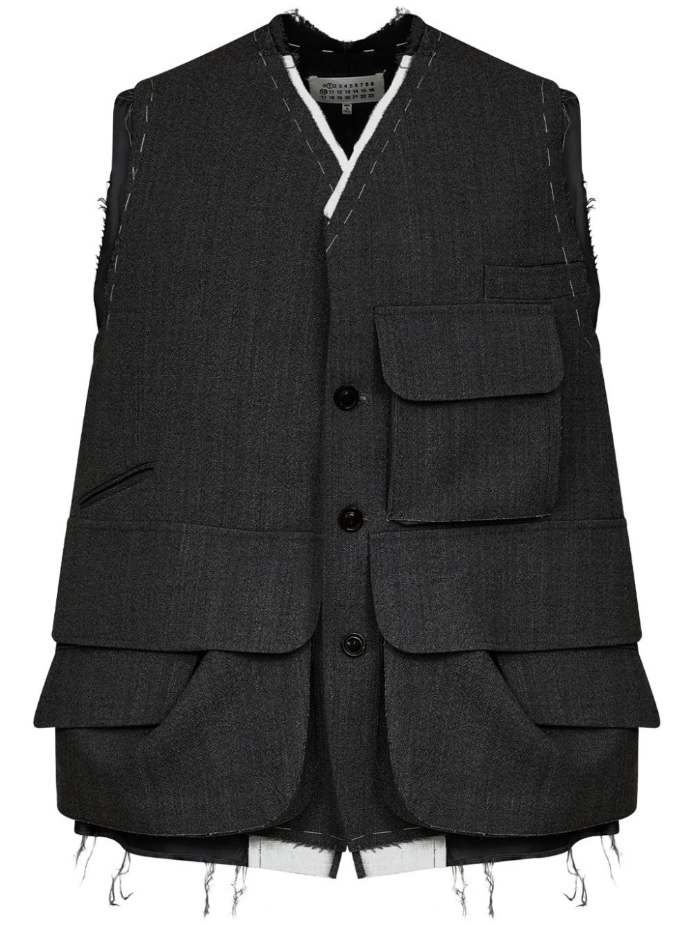 cargo wool vest Highlights - Dark grey - Wool - Front button fastening - V-neck - Multiple cargo pockets - Sleeveless - Straight hem Made in Italy Composition Wool 100%