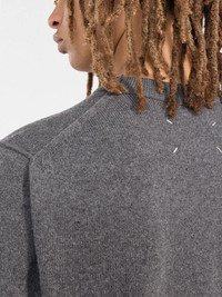 crew-neck cashmere jumper Maison Margiela minimalist aesthetic is captured on this knitwear design. Spun from 100% cashmere, this crew neck jumper features a tonal design that encapsulates the house's signature pared-back look. Highlights - Grey cashmere cashmere crew-neck jumper from maison margiela featuring crew neck, signature four-stitch logo and long sleeves. Made in Italy Composition Cashmere 100% SIZE & FIT Model measurements Height 6 ft 2 in(1.88 m) Bust/Chest 35.43 in(90 cm) Hips 36.61 in(93 cm) Waist 27.95 in(71 cm) Measurement CHEST 47.24 in(120 cm) LENGTH 28.14 in(71.5 cm) SLEEVE LENGTH 37 in(94 cm) FittingInformation This piece fits true to size. We recommend you get your regular size Cut for a relaxed fit Made with a mid-weight fabric Washing instructions Hand Wash