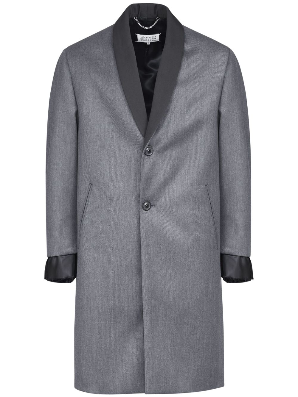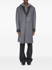 cavalry layered twill coat Highlights - Grey - Wool - Twill weave - Layered design - Shawl lapels - Contrasting collar - Front button fastening - Long sleeves - Two side slit pockets - Straight hem Made in Italy Composition Wool 100%