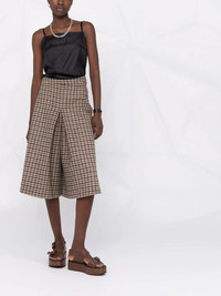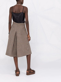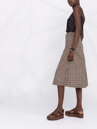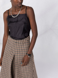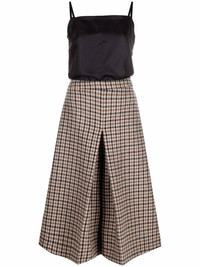 checked panel midi dress beige/black virgin wool/silk flared signature four-stitch logo square neck spaghetti straps mid-length Made in Italy Composition Virgin Wool 100%, Silk 100% SIZE & FIT Model measurements Height 5 ft 11 in(1.8 m) Bust/Chest 32.67 in(83 cm) Hips 36.22 in(92 cm) Waist 24.4 in(62 cm) FittingInformation This piece fits true to size. We recommend you get your regular size Designed for a close fit at the bust, waist and hips Made with a mid-weight non-stretch fabric Washing instructions Dry Clean Only
