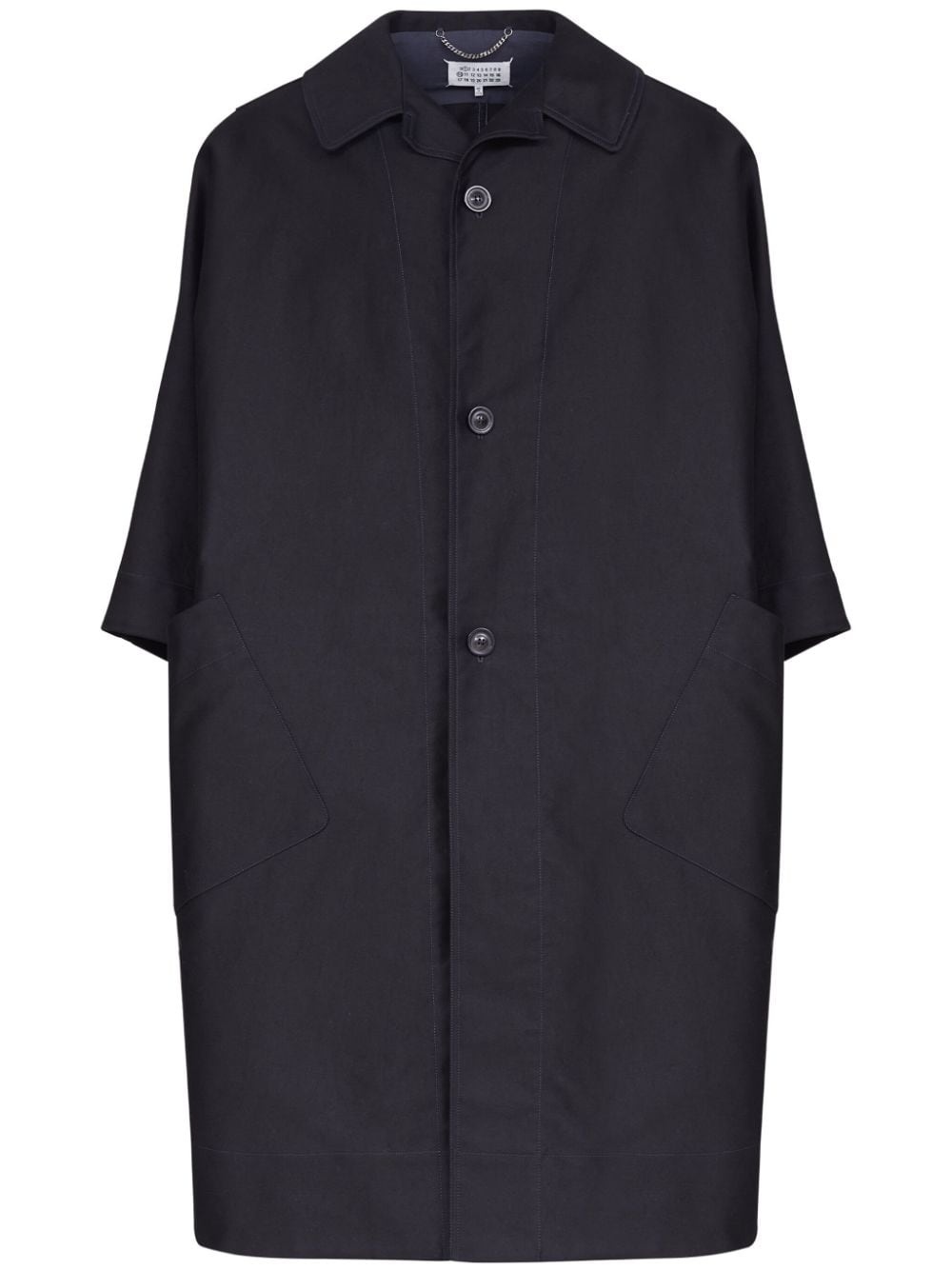 Cocoon long cotton coat Highlights - Black - Cotton - Cocoon design - Camp collar - Front button fastening - Three-quarter length sleeves - Straight hem - Long length Made in Italy Composition Cotton 100%
