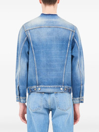 collarless denim jacket Highlights - Indigo blue - Cotton - Denim - Signature four-stitch logo - Raw-cut edge - Silver-tone hardware - Collarless - Front button fastening - Long sleeves - Buttoned cuffs - Two chest flap pockets - Waist tabs - Straight hem Made in Italy Composition Cotton 100% SIZE & FIT Model measurements Height 5 ft 10 in(1.77 m) Bust/Chest 35.03 in(89 cm) Hips 35.03 in(89 cm) Waist 23.62 in(60 cm) Washing instructions Read Manufacturer Guidelines