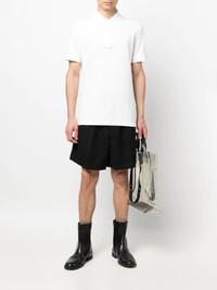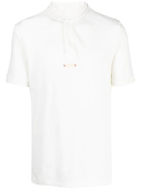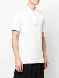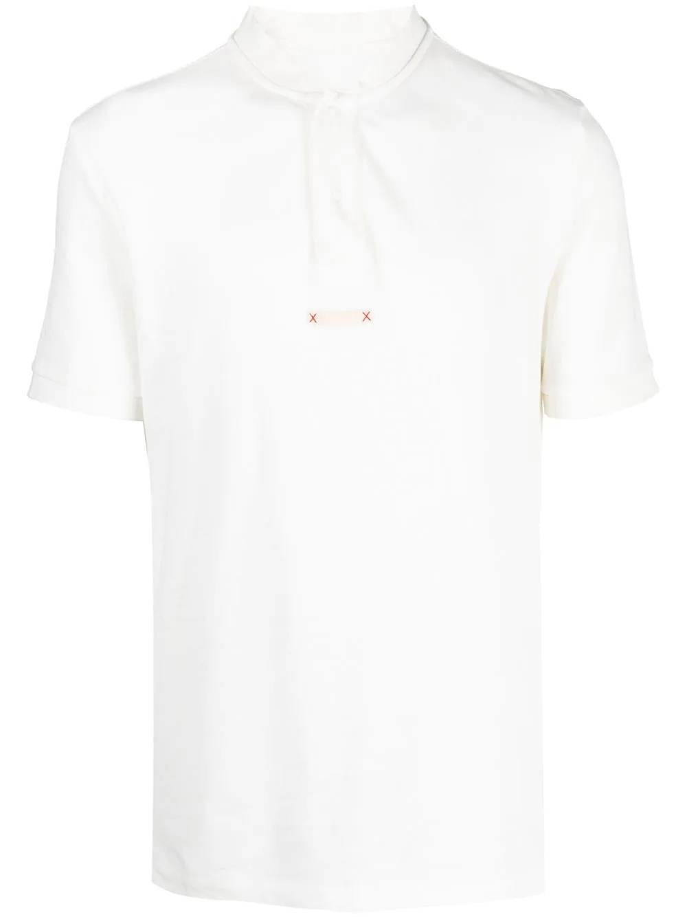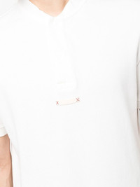 collarless polo shirt white cotton signature stitch detail collarless short front button fastening short sleeves Made In Italy Composition Cotton 100% SIZE & FIT Model measurements Height 6 ft 1 in(1.85 m) Bust/Chest 35.82 in(91 cm) Hips 37.79 in(96 cm) Waist 29.13 in(74 cm) Measurement CHEST 35.43 in(90 cm) Shoulder Width 16.53 in(42 cm) FittingInformation This piece fits true to size. We recommend you get your regular size Cut for a relaxed fit Made with a mid-weight fabric Washing instructions Machine Wash