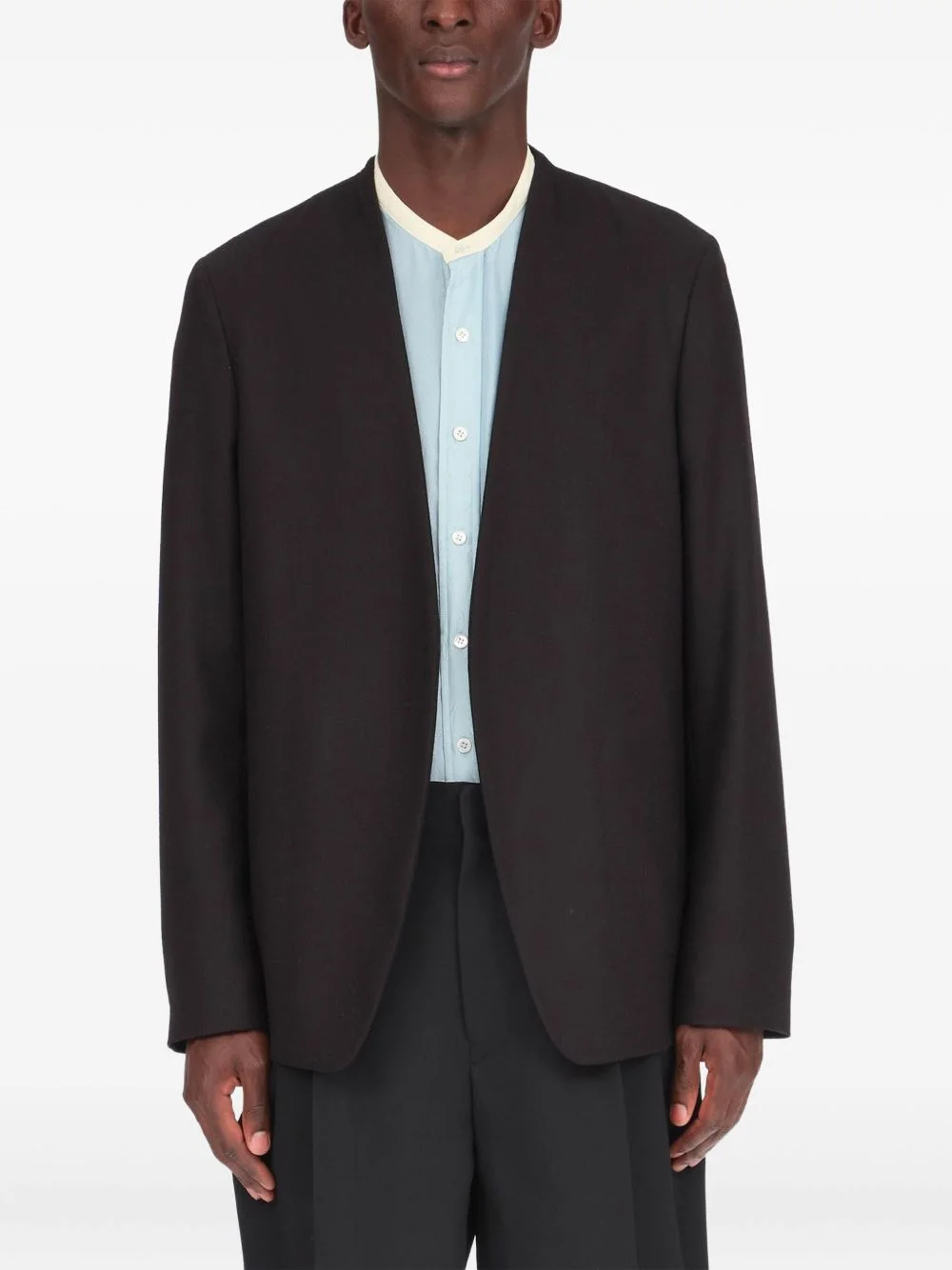 collarless vigin-wool blazer