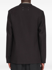 collarless vigin-wool blazer Highlights - Under the creative direction of british designer john galliano, this maison margiela collarless blazer represents the label’s flawless craftsmanship and offbeat direction. this black virgin wool and cotton maison margiela blazer is detailed with long sleeves, a straight hem and the maison’s iconic white quad stitching. Made in Italy Composition Outer: Virgin Wool 100%, Cotton 100% Lining: Viscose 100% SIZE & FIT Measurement CHEST 39.01 in(99.1 cm) SLEEVE LENGTH 25.98 in(66 cm) LENGTH 29.48 in(74.9 cm) WAIST 39.01 in(99.1 cm) Washing instructions Dry Clean Only