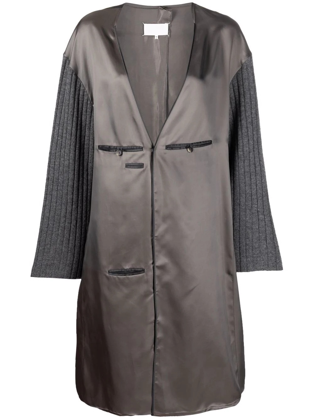 contrasting-sleeves V-neck dress grey wool two front welt pockets contrasting-fabric sleeves plunging V-neck drop shoulder long sleeves shift style straight hem Made in Italy Composition Wool 100%, Viscose 100% SIZE & FIT Model measurements Height 5 ft 10 in(1.78 m) Bust/Chest 31.49 in(80 cm) Hips 36.22 in(92 cm) Waist 25.59 in(65 cm) FittingInformation This piece fits true to size. We recommend you get your regular size Cut for a loose fit Made with a lightweight non-stretch fabric Washing instructions Dry Clean Only
