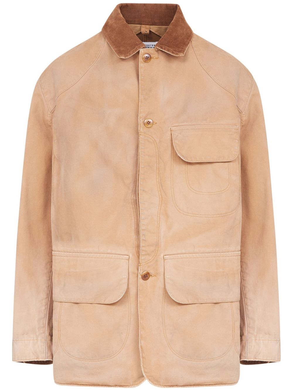 corduroy-collar waxed cotton jacket Highlights - Sand beige - Cotton - Wax coated - Corduroy collar - Front button fastening - Three front flap pockets - Long sleeves - Straight hem Made in Italy Composition Cotton 100%
