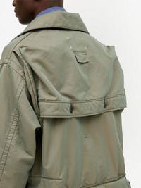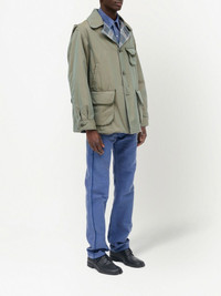 distressed cotton shirt jacket Highlights - Sage green - Cotton - Rounded collar - Decorative stitching - Checked lining - Front button fastening - Long sleeves - Two side flap pockets - Chest flap pocket Made in Italy Composition Cotton 100% Washing instructions Read Manufacturer Guidelines