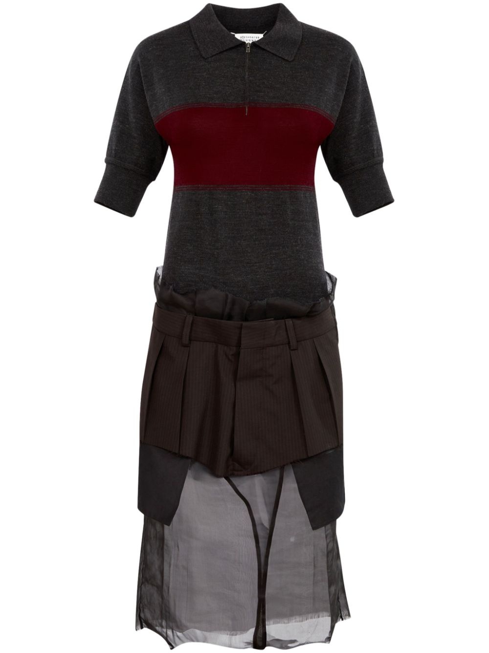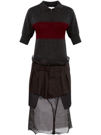 cotton-wool blend midi dress Highlights - Grey - Wool-cotton blend - Polo collar - Belt loops - Short sleeves - Signature four-stitch logo - Layered design - Rear jetted pocket - Semi-sheer construction - Calf-length Made in Italy Composition Wool 72%, Polyamide 18%, Cotton 10%