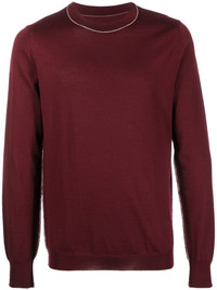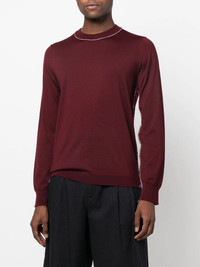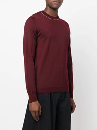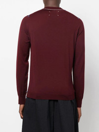 Work-In-Progress wool jumper Highlights - Crew neck pullover sweater from maison margiela featuring wine red, wool blend, fine knit, crew neck, long sleeves and ribbed hem. Made in Italy Composition Wool 98%, Cotton 2% SIZE & FIT Model measurements Height 5 ft 10 in(1.77 m) Bust/Chest 35.03 in(89 cm) Hips 35.03 in(89 cm) Waist 23.62 in(60 cm) Measurement CHEST 39.37 in(100 cm) SLEEVE LENGTH 25.98 in(66 cm) Shoulder Width 14.96 in(38 cm) FittingInformation This piece fits true to size. We recommend you get your regular size Cut for a relaxed fit Made with a mid-weight fabric Washing instructions Hand Wash