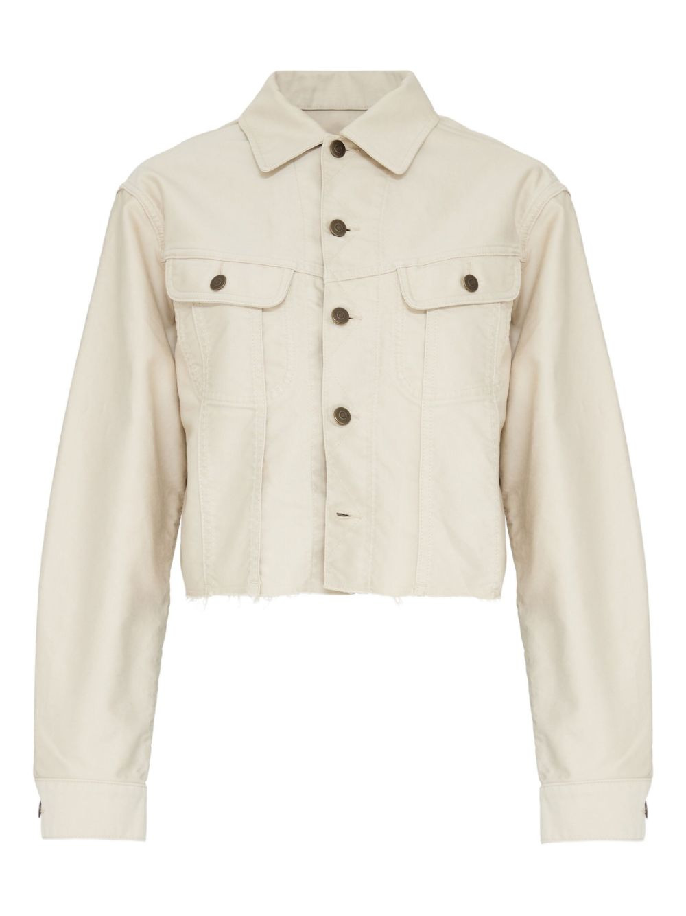 cropped denim jacket Highlights - Cream - Button closure - Chest pockets - Long sleeves - Raw-cut hem Made in Italy Composition Cotton 100% Washing instructions Machine Wash