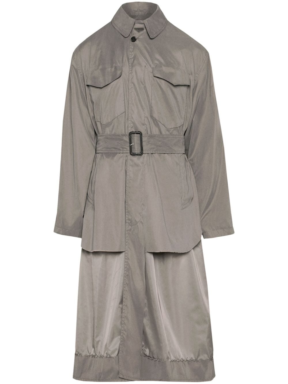 Decortique reversible trench coat Highlights - Medium grey - Reversible - Classic collar - Concealed front fastening - Long sleeves - Two chest flap pockets - Belted waist - Layered design - Mid-calf length - Straight hem - Signature four-stitch logo Made in Italy Composition Polyester 85%, Polyamide 15% SIZE & FIT FittingInformation Designed to be unstructured, offering a loose fit throughout The belt offers adjustability for fitted preferences Made from a midweight non-stretch fabric Measurement BUST 46.85 in(119 cm) SLEEVE LENGTH 24.01 in(61 cm) Shoulder Width 19.68 in(50 cm) Washing instructions Read Manufacturer Guidelines