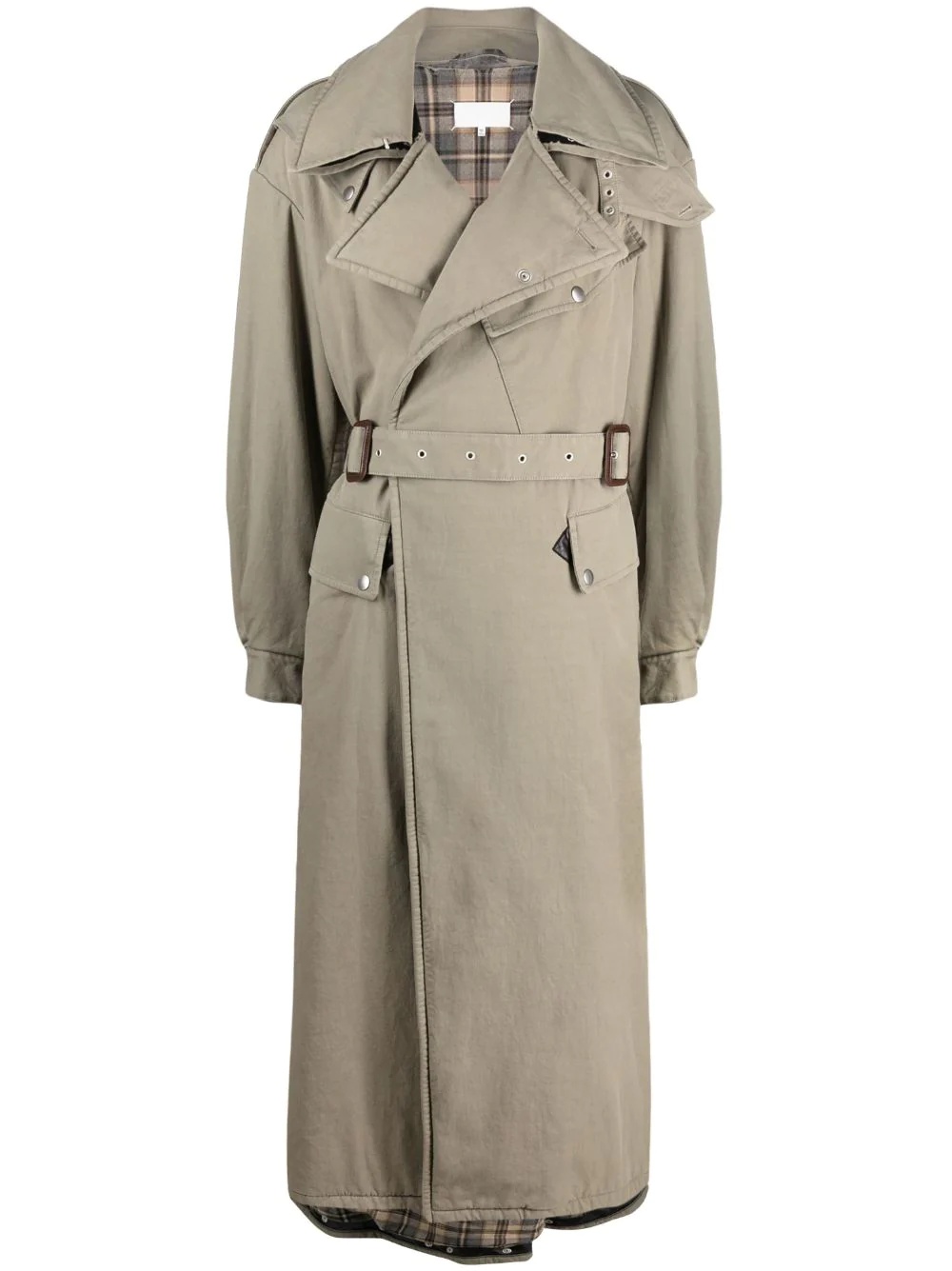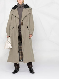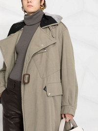 deconstructed trench coat An alternative to the classic trench coat, this raincoat from Maison Margiela is presented in two tonal green colourway. Cut to a belted waist, the coat features flap pockets and a signature four stitch logo at the sleeve. Made in Italy Composition Outer: Cotton 100%, Polyurethane 100%, Viscose 100% Lining: Cotton 100%, Polyester 100%, Viscose 100%, Virgin Wool 100% SIZE & FIT Model measurements Height 5 ft 10 in(1.79 m) Bust/Chest 31.49 in(80 cm) Hips 34.25 in(87 cm) Waist 22.83 in(58 cm) Washing instructions Dry Clean Only