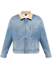 Distressed Corduroy-Trimmed Denim Jacket