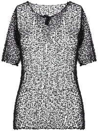 dot-embroidered semi-sheer top Highlights - Black - Stretch-design - Semi-sheer construction - Polka dot embroidery - Round neck - Short sleeves - Straight hem - Short front button fastening Imported Composition Polyester 51%, Polyamide 49%
